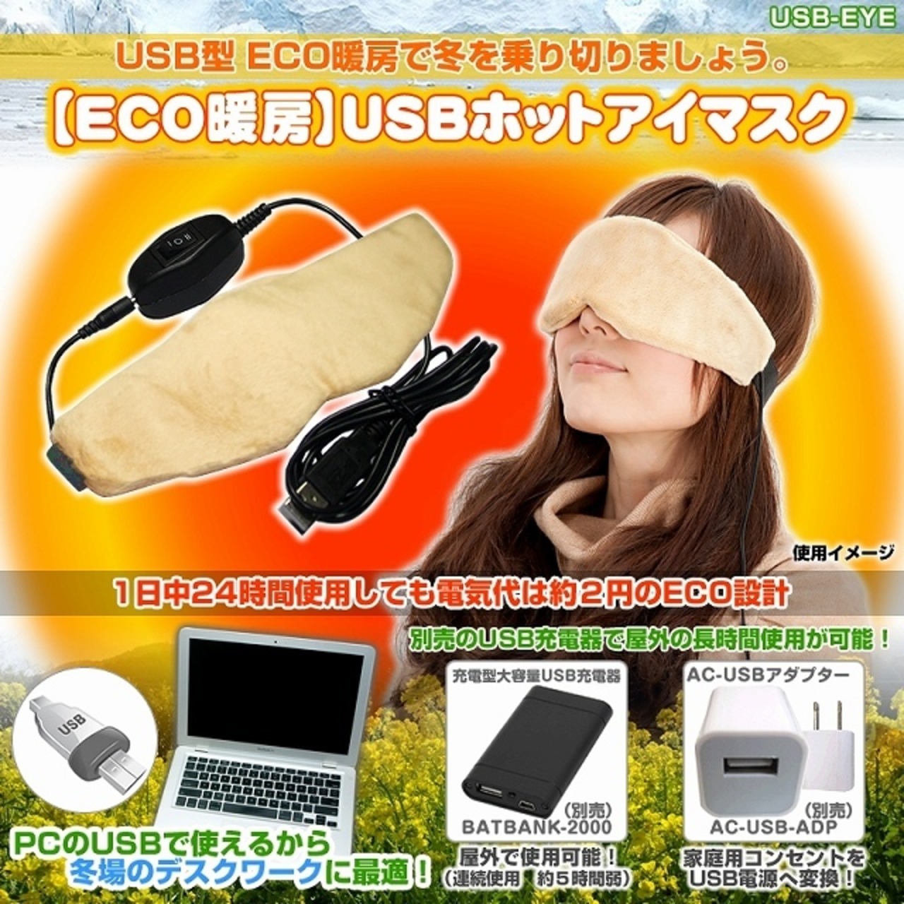 【疲れた目をぽかぽか温めて癒します】USB式 ホットアイマスク 温度調節可能
