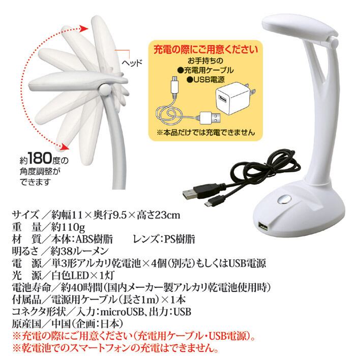 ●ライトは乾電池でも、お手持ちのUSB電源でも使えます