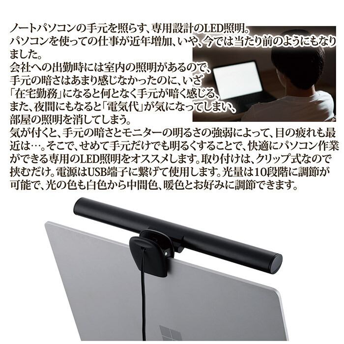 ノートパソコンの手元を照らす、専用設計のLED照明。パソコンを使っての仕事が近年増加、いや、今では当たり前のようにもなりました。