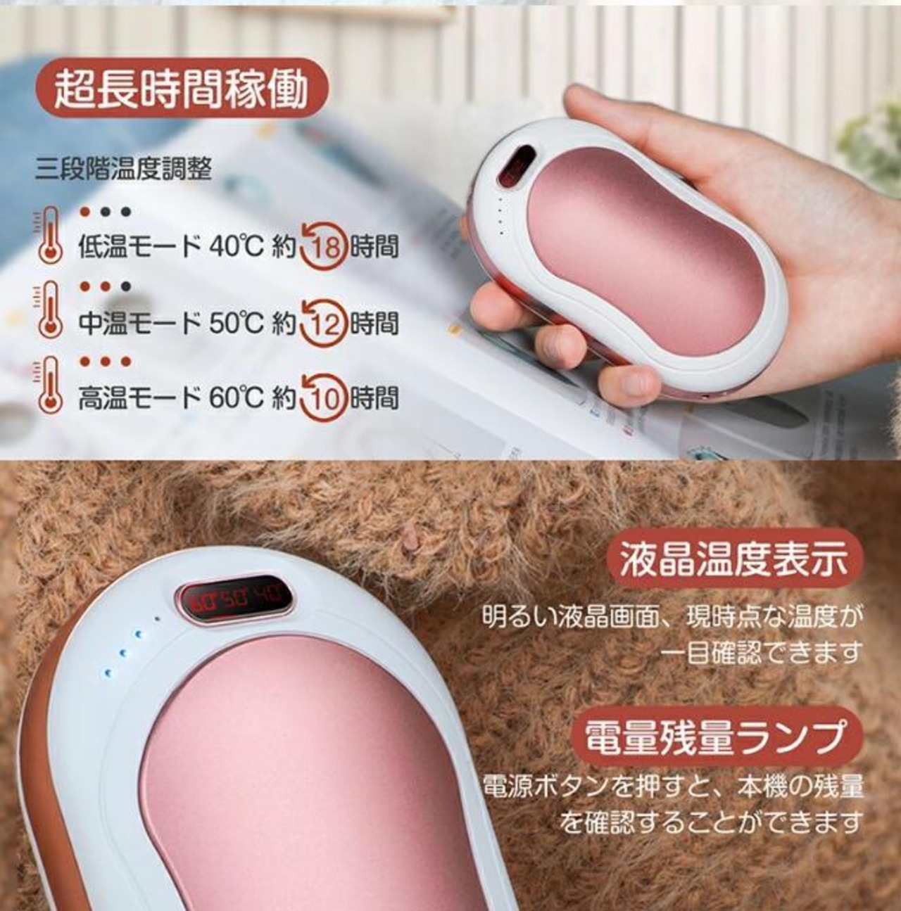 充電式カイロ ハンドウォーマー SOS点灯 マッサージ機能 モバイルバッテリー USBカイロ PSE認証済