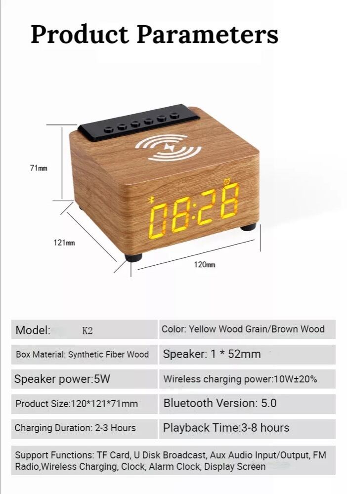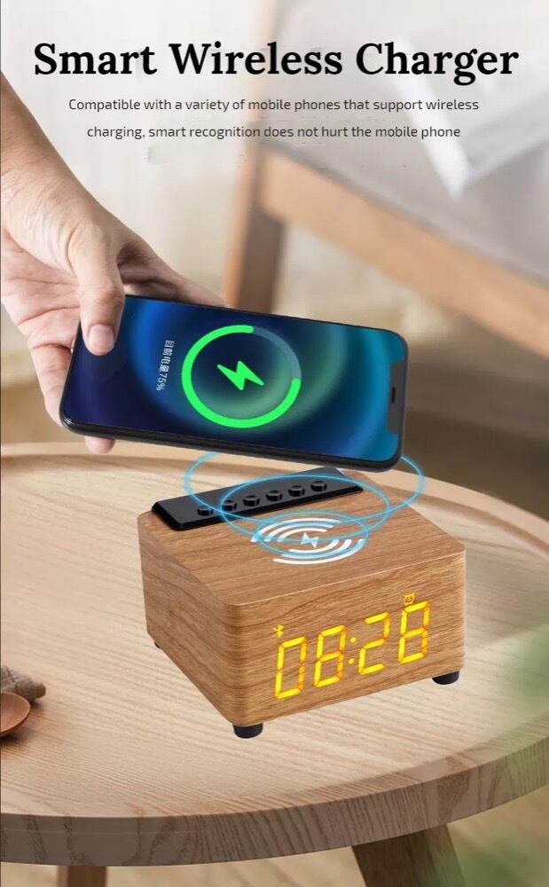 多機能なワイヤレス充電器です。目覚まし時計、ウッドワイヤレスBluetoothスピーカー、サブウーファーの機能を一つにまとめた便利なアイテムです。