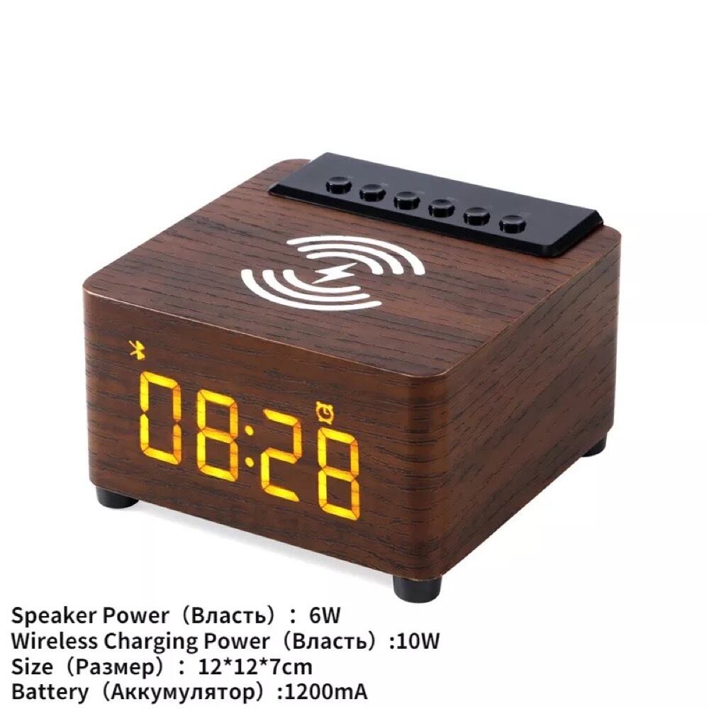多機能 ワイレス充電器 目覚まし時計 ウッドワイヤレスBluetoothスピーカー サブウーファー