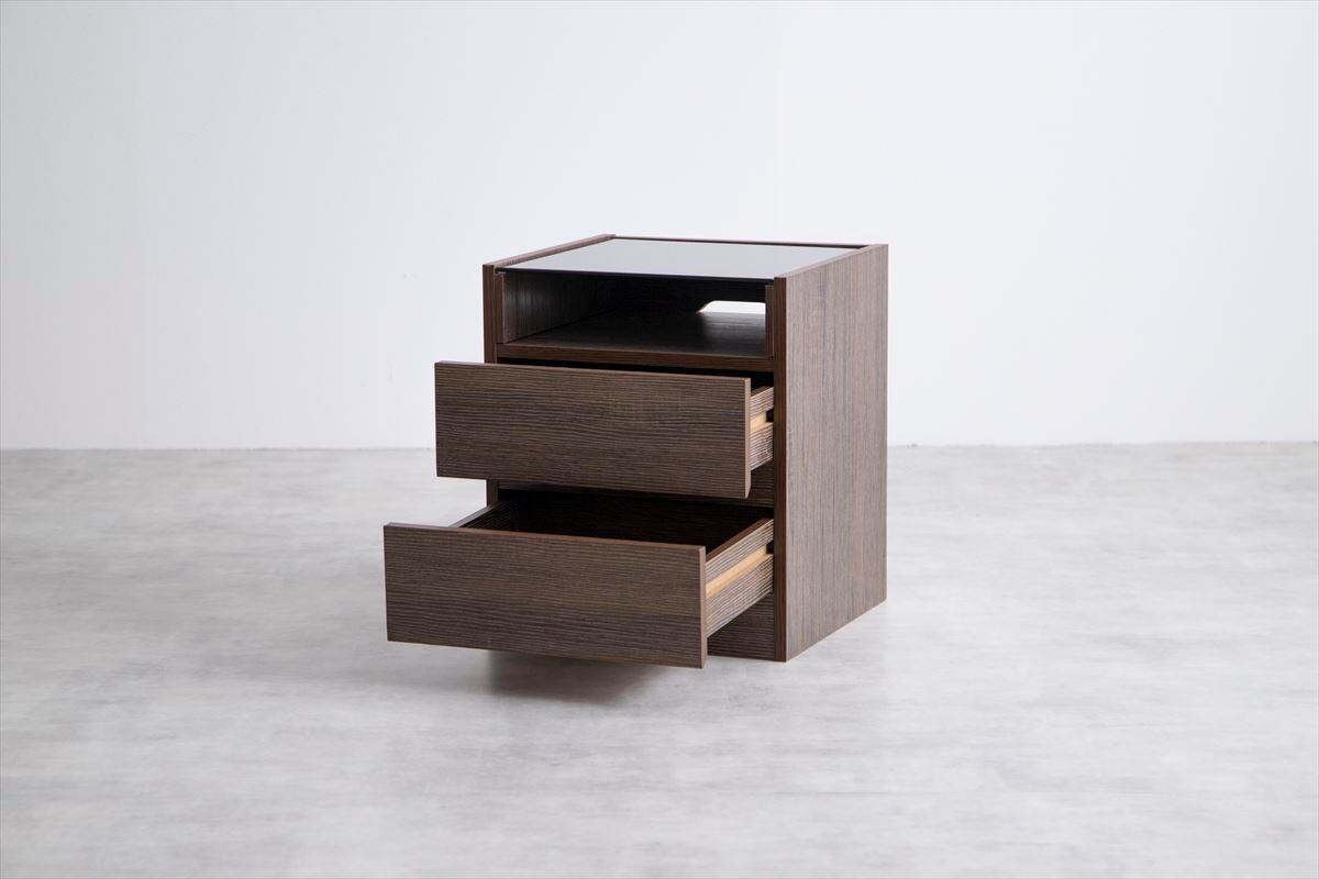 できる限り凹凸を無くしたフラットな外観が、スタイリッシュで美しい『Connie(コニー)』ナイトテーブル